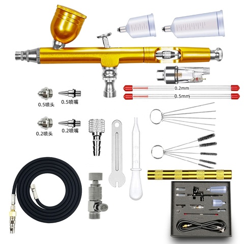 Kit de aerógrafo de dos tiempos automotriz profesional 0,3 0,5 0,8mm accesorios de boquilla modelo de aerógrafo esmalte de uñas